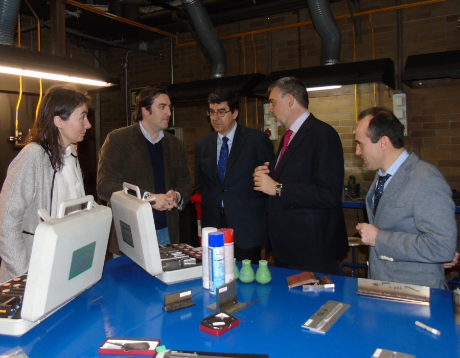 Tras mantener una reunión en el Centro de Aplicaciones Láser con Jesús Lago y Víctor Pintos y director gerente y director de Operaciones de AIMEN, respectivamente; se trasladaron al Edificio Armando Priegue, en Torneiros, para conocer a los alumnos que están realizando dos de los cursos AFD (Acciones Formativas dirigidas prioritariamente a desempleados) que está impartiendo AIMEN. Asimismo, la comitiva realizó un recorrido por los talleres y laboratorios de las instalaciones del edificio.