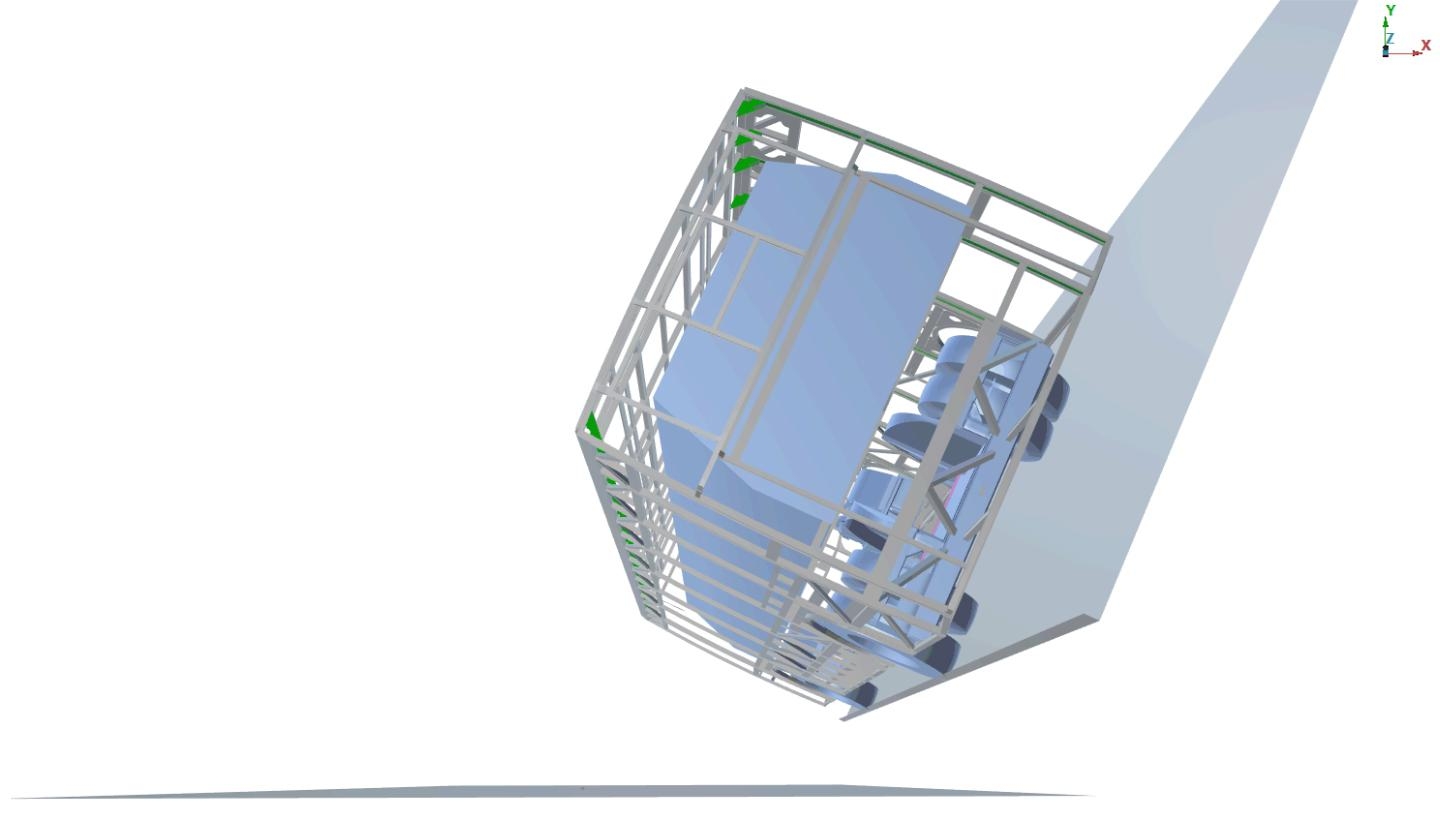 Simulación de vuelco en estructura híbrida de autobús
