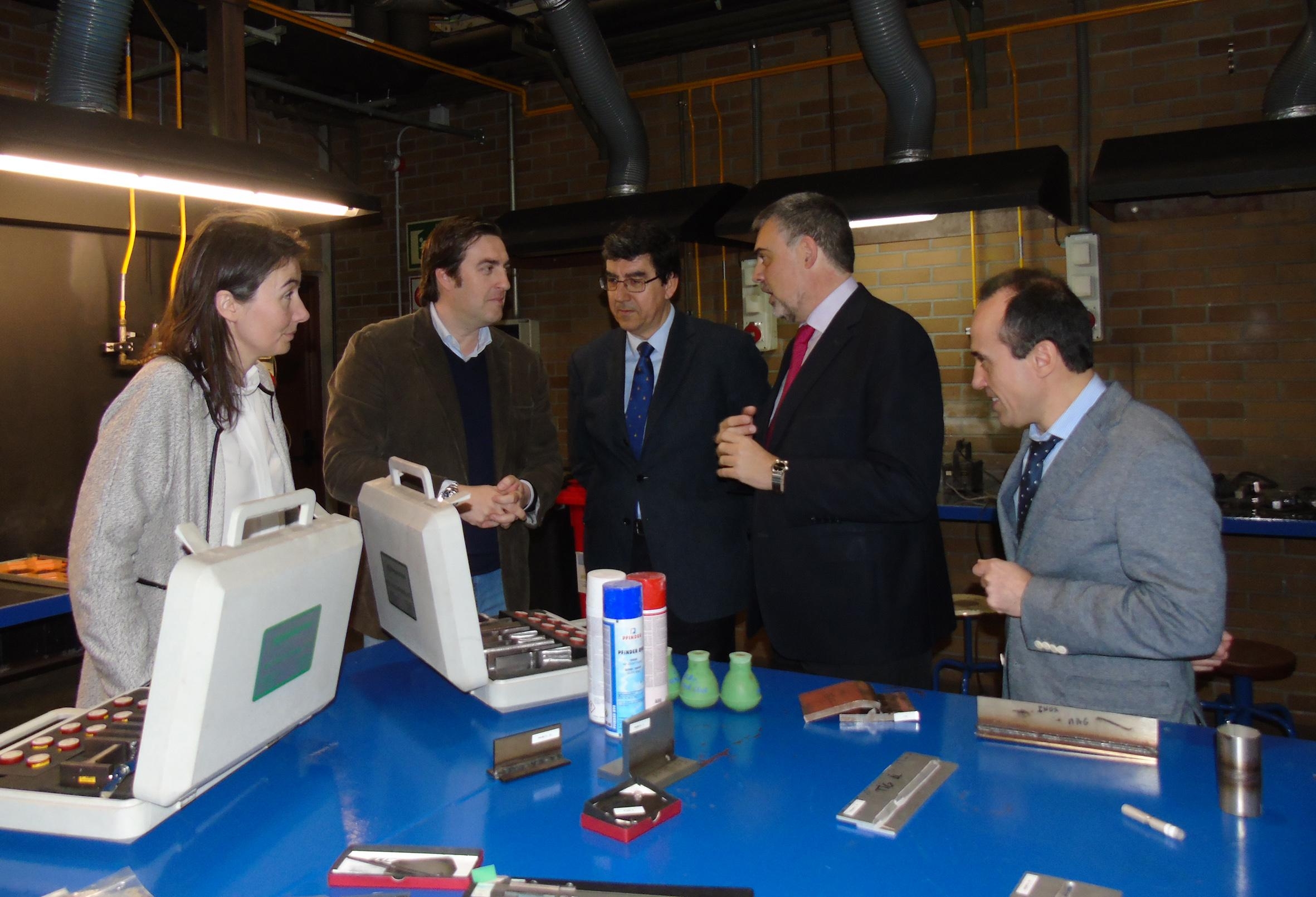 Tras mantener una reunión en el Centro de Aplicaciones Láser con Jesús Lago y Víctor Pintos y director gerente y director de Operaciones de AIMEN, respectivamente; se trasladaron al Edificio Armando Priegue, en Torneiros, para conocer a los alumnos que están realizando dos de los cursos AFD (Acciones Formativas dirigidas prioritariamente a desempleados) que está impartiendo AIMEN. Asimismo, la comitiva realizó un recorrido por los talleres y laboratorios de las instalaciones del edificio.